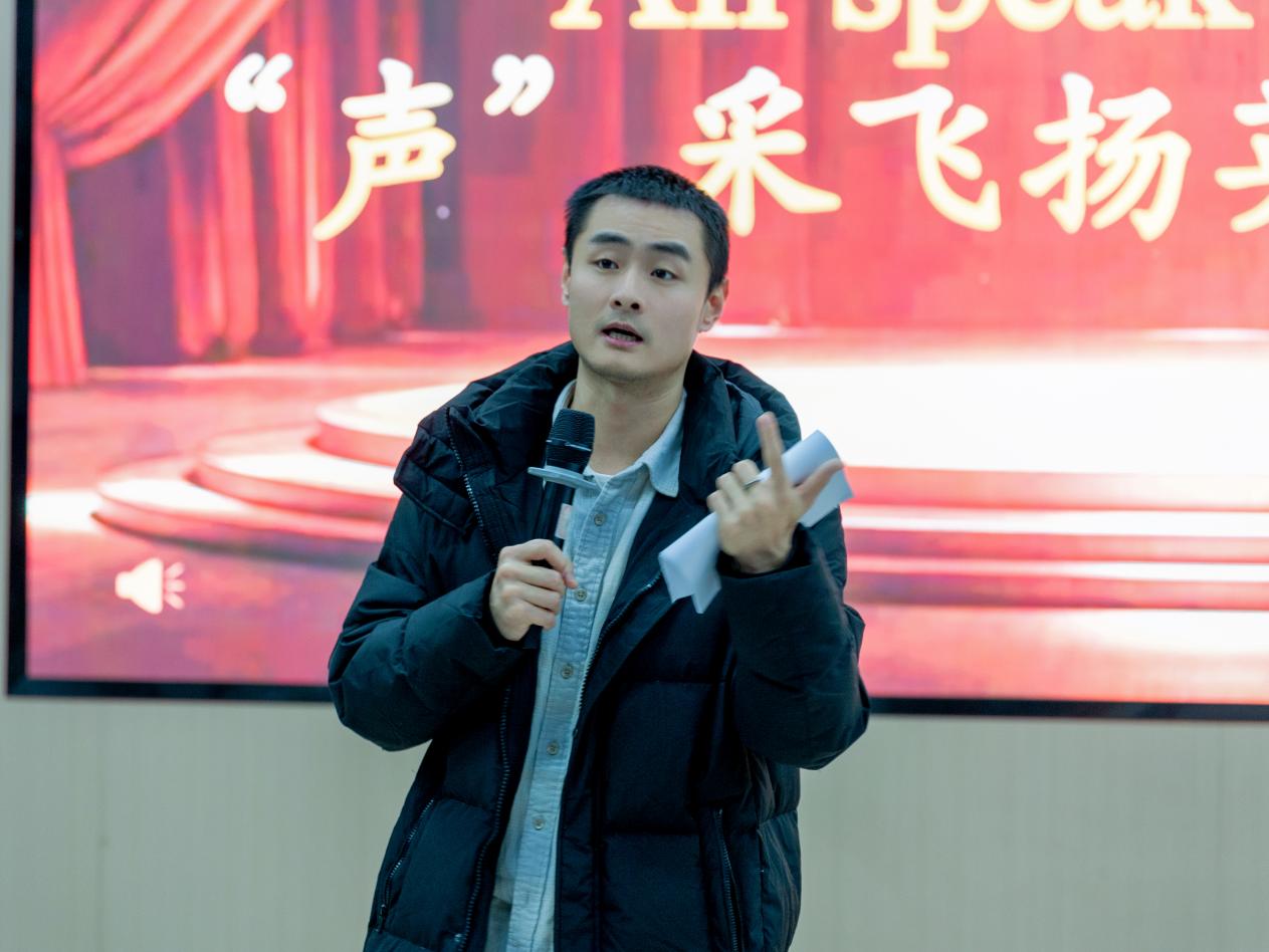 为活跃校园文化氛围,展示学子英语口语风采,搭建语言表达与文化交流的多元平台,12月3日晚,第四届All Speak English——“声”采飞扬英文配音大赛决赛在B南108正式拉开帷幕。国际教育学院分团委书记马浩杰、学生党支部书记金晨及教师代表王浚洁、朱倩文担任评委,与现场数百名师生共同见证这场“以声为媒、以音传情”的语言艺术盛宴。
