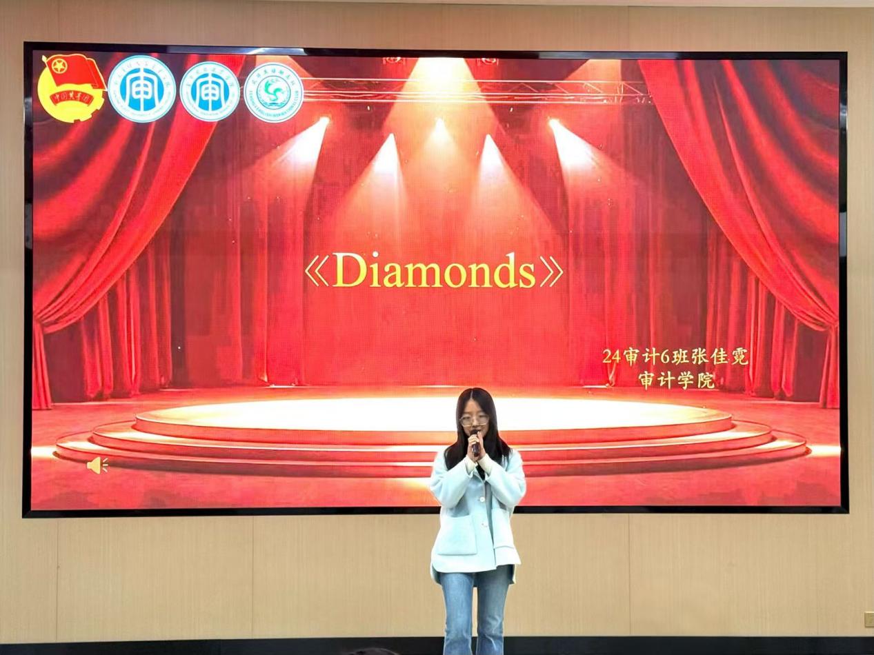 中场休息环节,张佳霓同学带来歌曲《Diamonds》,清澈嗓音与动人旋律为紧张的比赛注入温暖气息,让现场氛围在热血竞技与温情演绎间巧妙平衡。